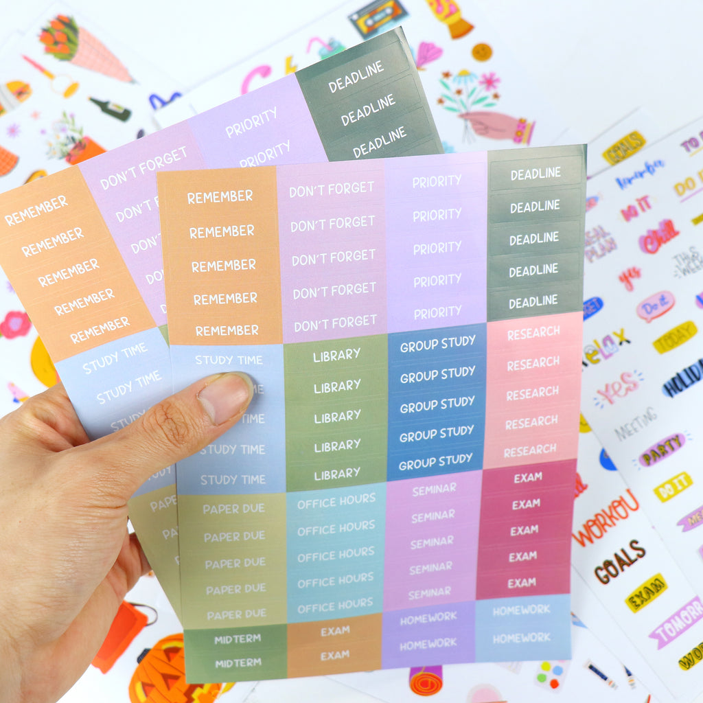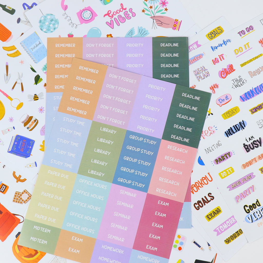 Introducing our 12-Page Academic Sticker Pad – the ultimate planner companion for both function and style. Organize your schedule, mark important events, and elevate your planner's aesthetic with a versatile mix of stickers. Celebrate and organize life's moments effortlessly! (Why stickers? Sheer fun, but also when you use them, it's "active" so you are more likely to remember the event or task!)