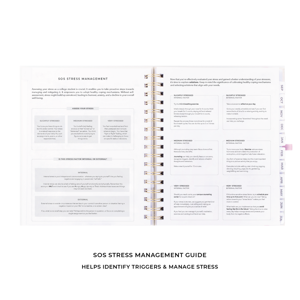 The only academic planner created by a teaching college professor, our planner was designed with college student's success & health in mind.