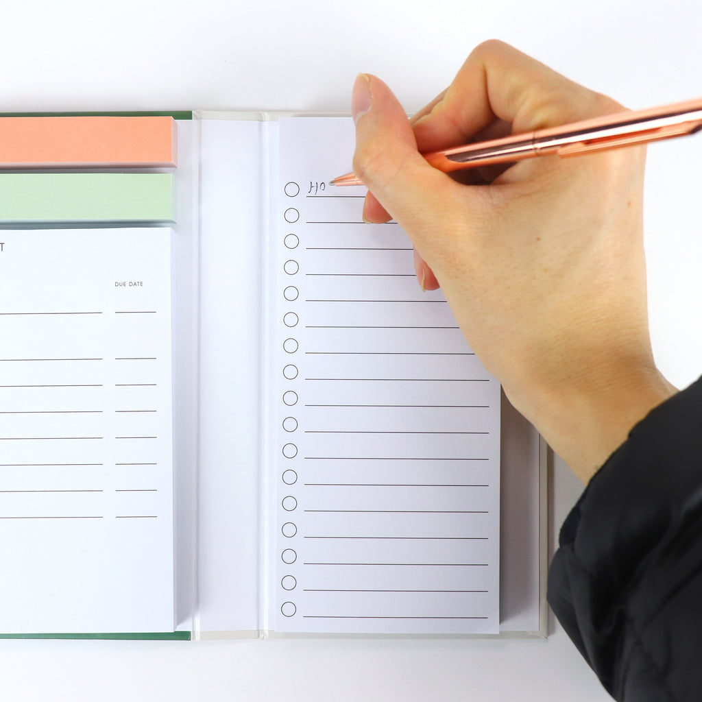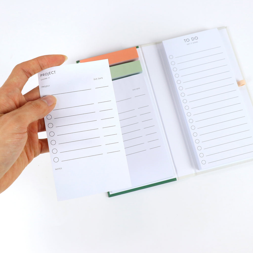 Now, it might be tempting to reach for your smartphone, but did you know that by writing your thoughts by hand, you’re already helping them stick in your brain more than if you typed it? Just by using a pen! Plus, I’ve added a few functional goodies like the project planner page and aesthetic page tabs just to keep you more organized.