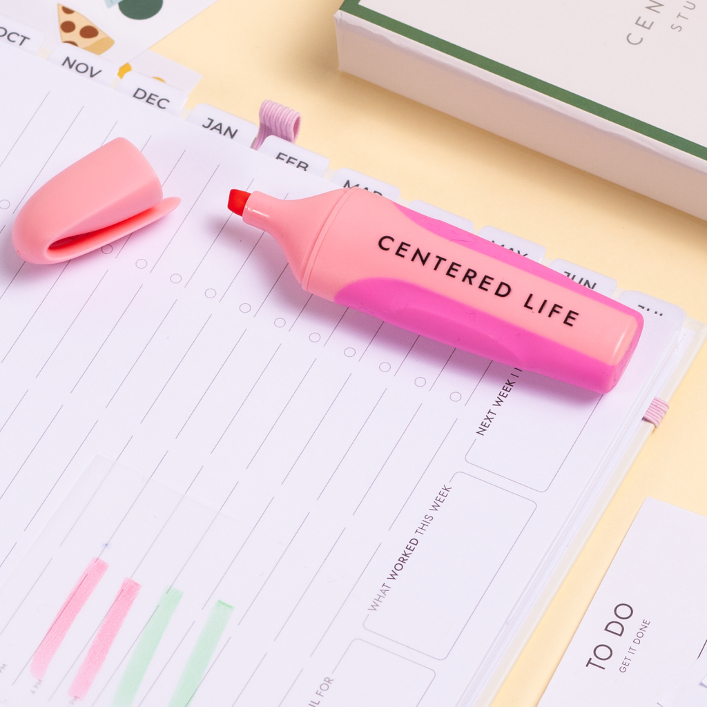 This year, we are thrilled to offer our Happy Highlighters. They are compact but feel great in your hand and were specially designed with easy grip sides for a firm grasp and precise highlighting. A perfect planner side-kick, the happy highlighters work equally well on textbooks, notebooks, planner pages, and our Smarter Sticky Notes. Pick one per task or color-code to your heart's content! As long as you are doing something active when you study, you are learning. 6 Highlighters per Pack.